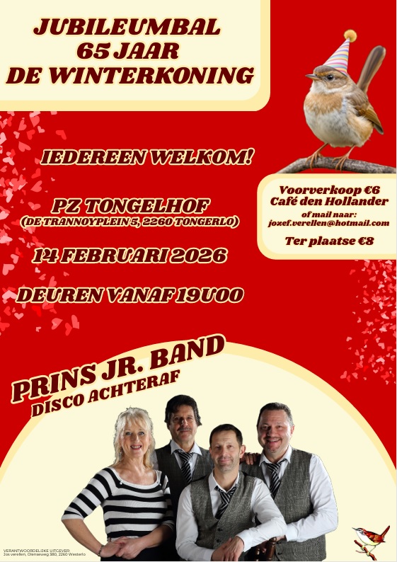 Hartelijk welkom op de website van de ornithologische vereniging De Winterkoning. Onze vereniging is opgericht in 1961 uit het ter ziele gegane vogelvereniging Den Arend uit Westerlo.Wanneer deze vereniging ophield met hun activiteiten zijn een paar dapperen uit Tongerlo bereid gevonden om in onze gemeente met een vogelvereniging te starten, naar het beeld van het kleine winterkoninkje is onze vereniging De Winterkoning ontstaan.